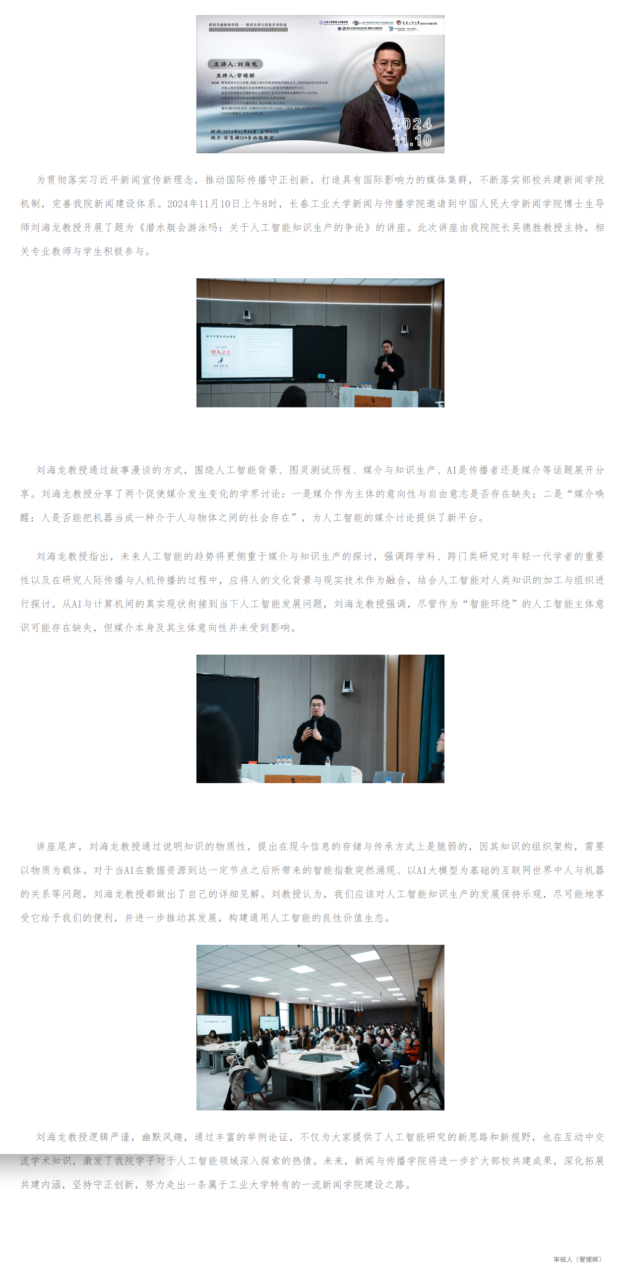 花都影视 部校共建新闻学院——新闻名师大讲堂系列讲座《潜水艇会游泳吗:关于人工智能知识生产的争论》