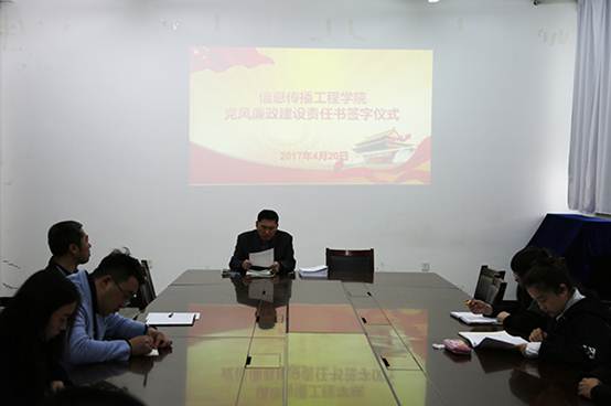新闻网讯(通讯员刘永帆)根据学校党委的相关要求,4月20日下午2点,信息传播工程学院举行“党风廉政建设责任书签字仪式”,学院党政领导班子成员、各党支部书记和全体党员、干部参加了会议。会议由院党委书记李仲德主持。