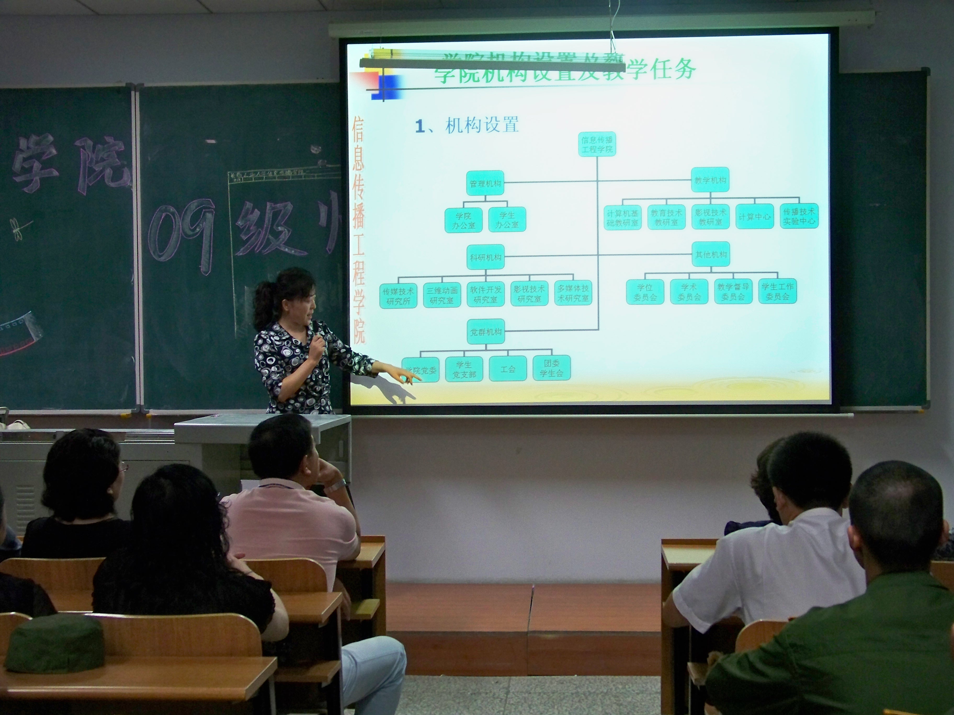9月3日晚,在教学科研楼307教室,学院党政领导、办公室以及两个专业全体教师与刚刚入学的全体同学举行了新生见面会。首先,院长朱丽莉教授对新同学的到来表示了热烈的欢迎,并对学院的整体情况进行了详细介绍,使同学们对学院的概况有了更深入的了解,随后院党委书记李志权对同学们进行了深刻的思想动员和简单的校规校纪教育,并着重强调了高中到大学的学习和生活转变的重要性。此次见面会达到了预期的效果,为新生能够拥有一个良好的大学生活奠定了基础。见面会后,教育技术和广播电视编导两个专业分别继续进行专业介绍。