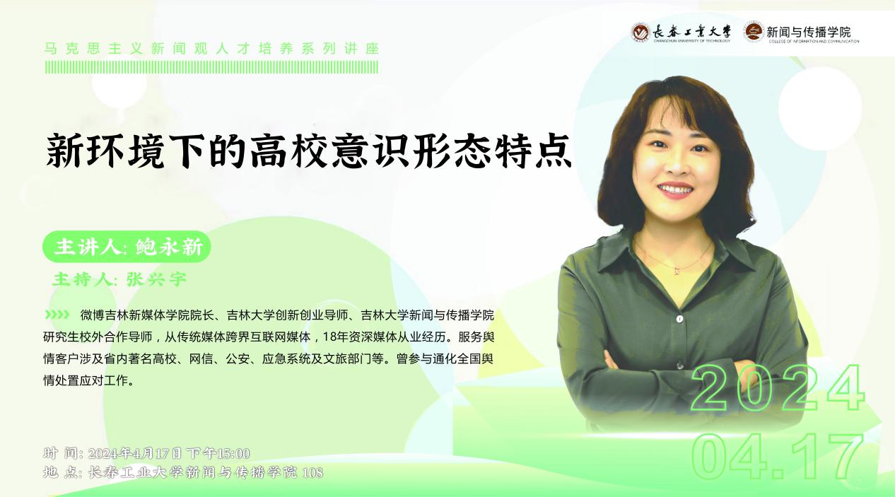 邀请新浪吉林运营总监鲍永新老师开展了题为《新环境下的高校意识形态特点探析》的专题讲座。该讲座由花都影视