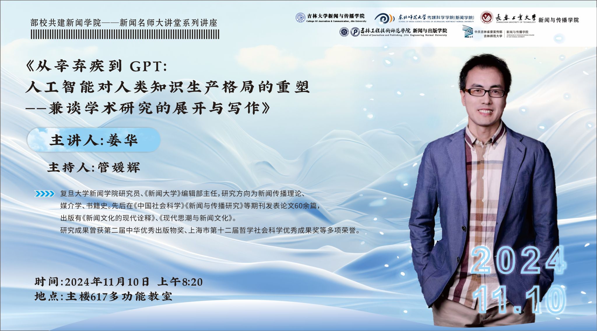 邀请到复旦大学新闻学院研究员、《新闻大学》编辑部主任姜华老师开展了题为《从辛弃疾到GPT:人类知识的生成与演变——兼谈学术研究的展开与写作》的学术讲座。此次讲座由花都影视