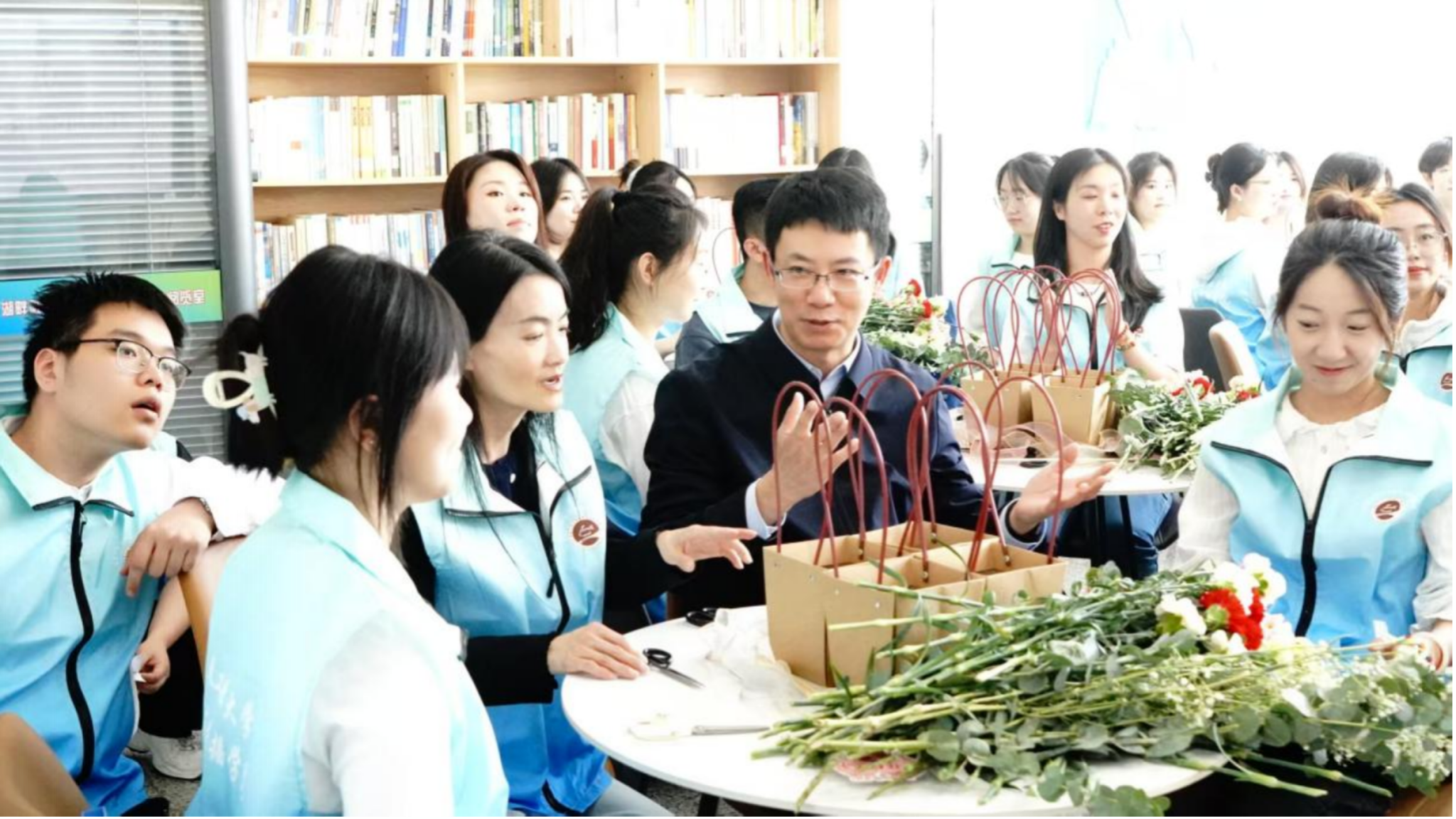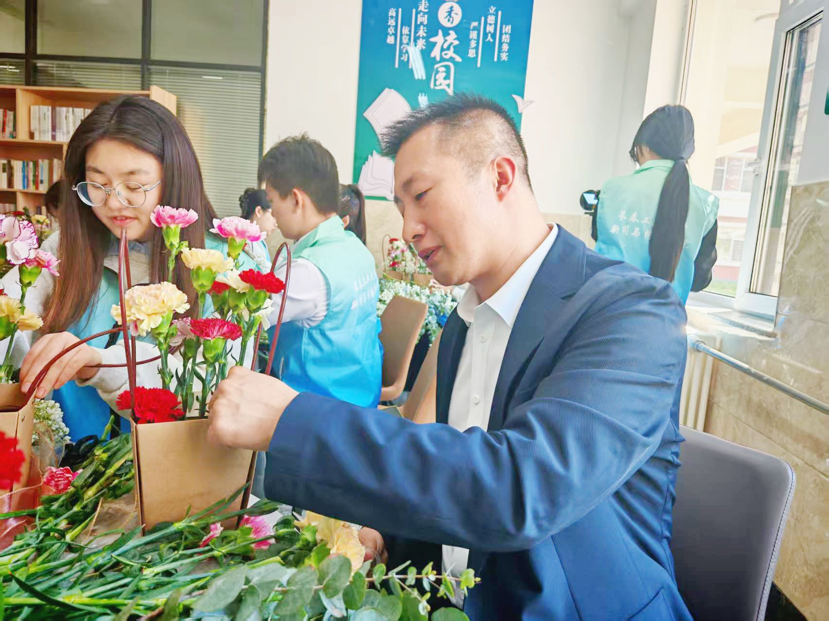 于三、四栋湖畔社区举办了“温情五月,感恩母爱”母亲节插花活动,为校园增添了一抹别样的温暖色彩。副校长林洁琼、研究生工作部部长孙兆龙、校团委书记邵捷、学院党政领导和教师、学生代表共同参与此次活动。